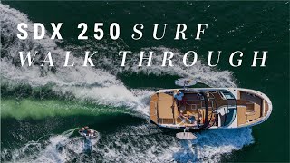 At the heart of this machine is a powerful 350HP Mercruiser engine, providing the torque and reliability needed for all-day tow sports. The SDX 250 Surf is purpose-built for action, featuring a specialized watersports tower equipped with a bimini top and tower speakers that project your playlist to the rider. The hull and propulsion geometry are optimized to create a clean, surfable wake, making it an ideal choice for both novice riders and seasoned wakesurfers looking to elevate their skills.